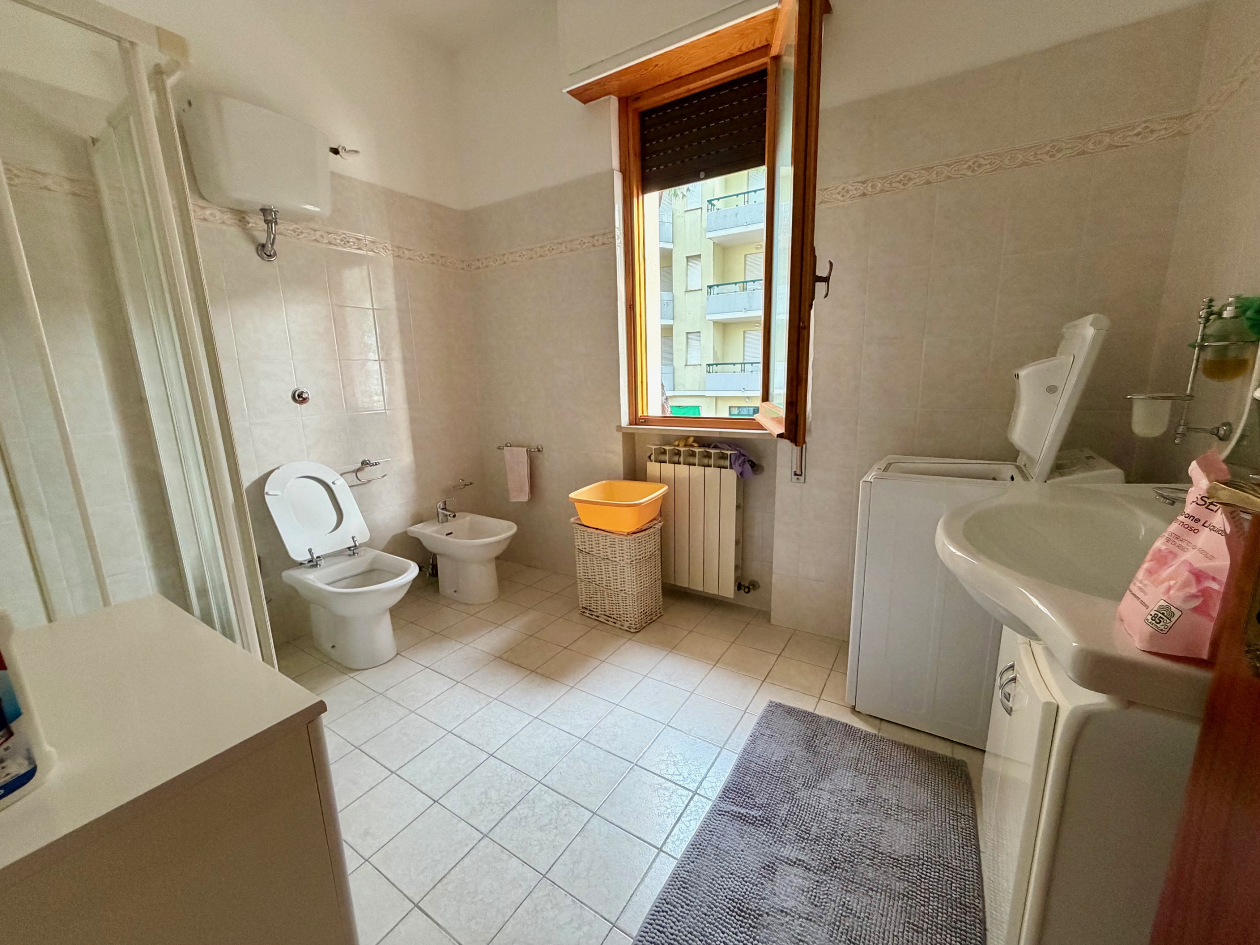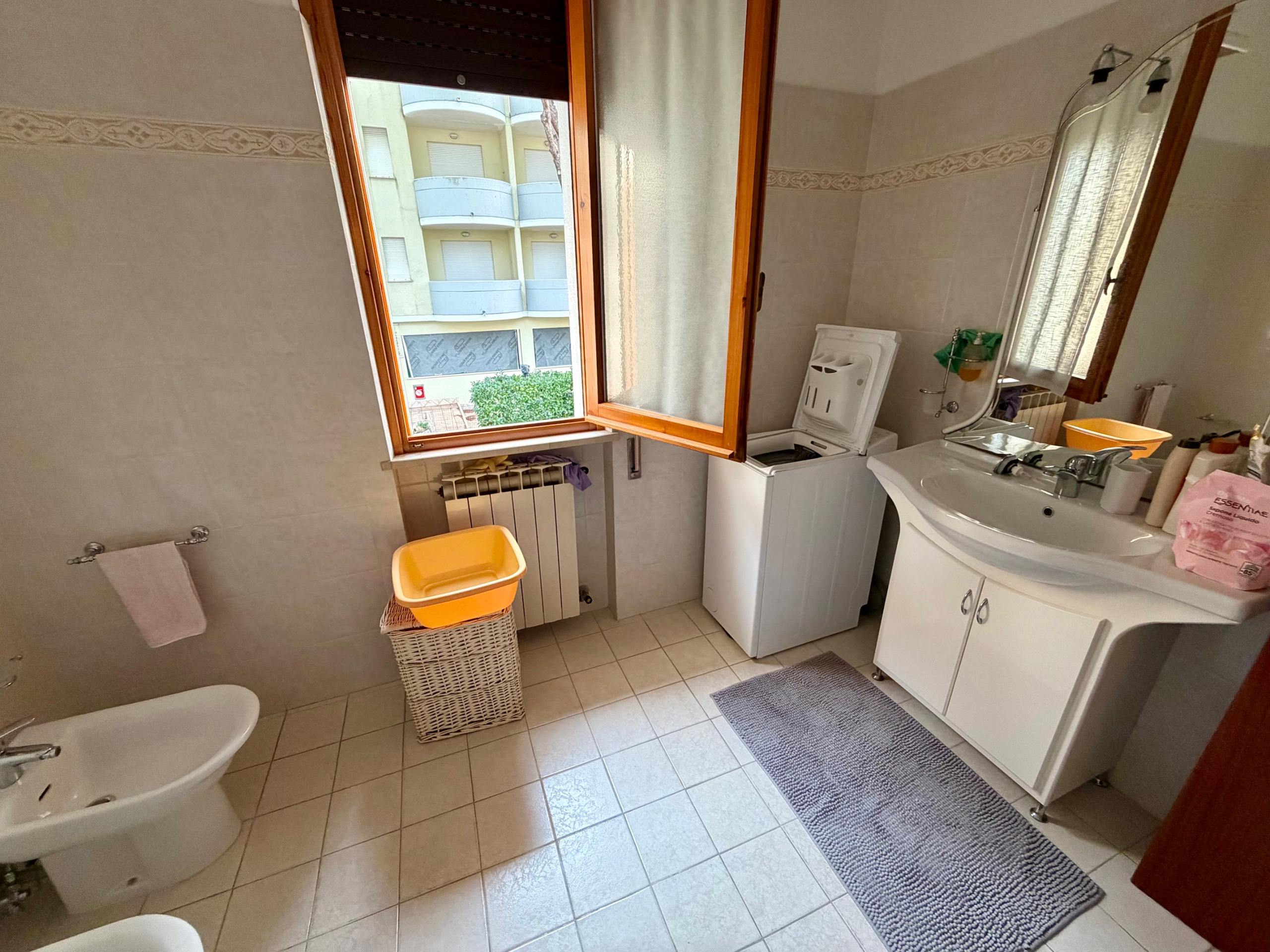 Appartamento di circa 78 mq. + ampi balconi a soli 80 metri dal Lungomare (terza fila) in zona centrale di Tortoreto Lido. Sito al 1° piano di un piccolo condominio e così composto: ingresso, comodo soggiorno, cucinino separato e con balcone di servizio, disimpegno zona notte, 2 camere da letto matrimoniali, bagno con doccia e finestra, ripostiglio interno, ampi balconi presenti in ogni stanza, camere da letto incluse, cantina al piano seminterrato e posto auto recintato. L’appartamento viene proposto completo di arredi in ottimo stato ed impianto di climatizzazione. La palazzina è stata recentemente ristrutturata, così come tutti gli interni dell’appartamento. Ottima opportunità ideale sia per uso vacanza sia per uso residenziale.